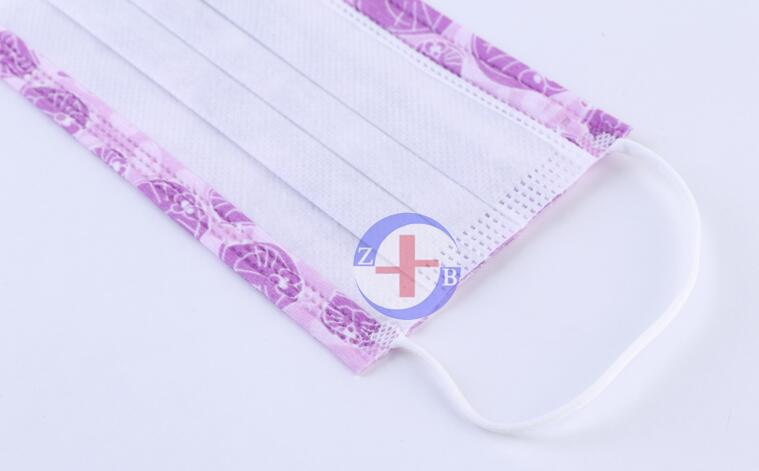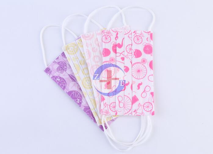 材料组成:优质无纺布+高效过滤布+卡通图案水刺无纺布,可塑性鼻梁夹,氨伦耳带
